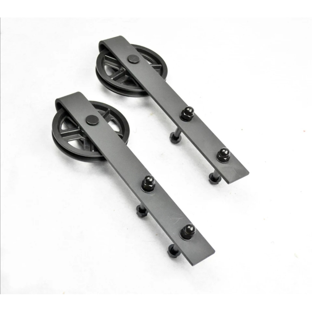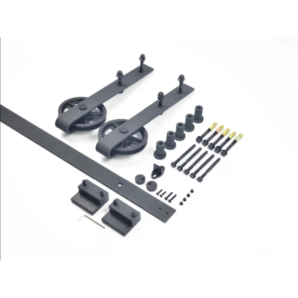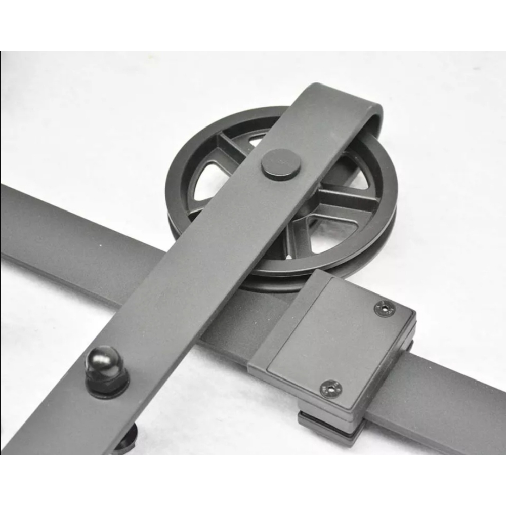 Railsysteem zwart Lengte 200 cm Voorzien van rollers met grote wielen Compleet met rollers, vloer geleider, deurstoppers en alle benodigde bevestigingsmaterialen
